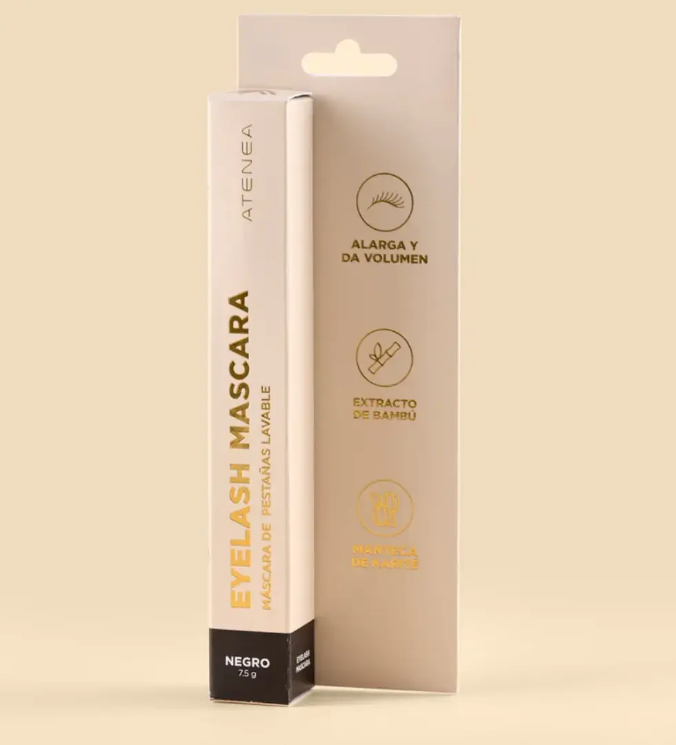 La Máscara Negra Lavable de Atenea está diseñada para quienes sienten que sus pestañas se ven cortas, sin volumen o que el rímel se cae durante el día. Su fórmula ligera pero altamente pigmentada transforma unas pestañas apagadas en una mirada más definida, alargada y con un negro intenso que realza cualquier maquillaje.